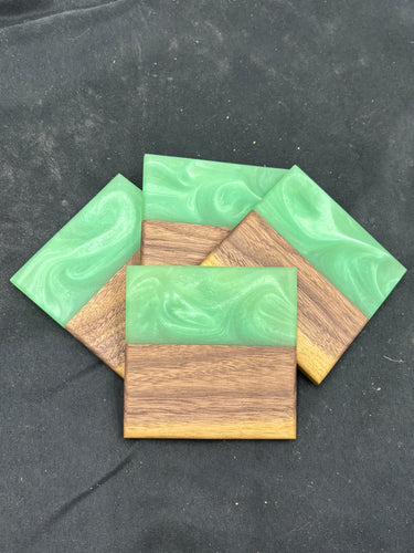 Each coaster is a miniature work of art, featuring unique swirls of food-safe epoxy set against rich wood grains like walnut, oak, or maple. Whether you're sipping coffee, wine, or cocktails, these coasters bring modern craftsmanship and timeless style to your table.